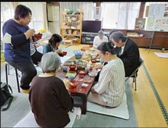 スタッフの懇話が終わり、お昼になると、皆でお供えものと同じご馳走を頂く。