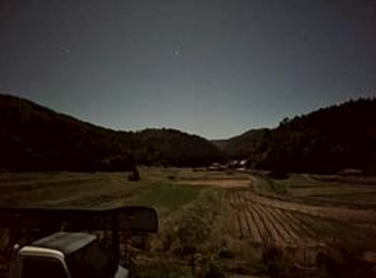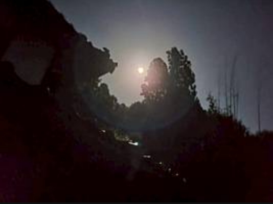 真夜中の9時過ぎに、裏山の木立の間から、コウコウと輝いて、辺りを照らす。