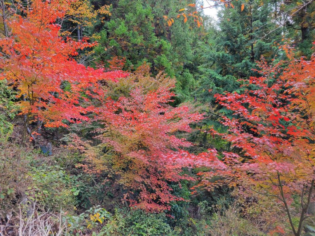 11月の下旬ともなるとその紅葉が一段と進み、山々が見事な紅葉に包まれる。