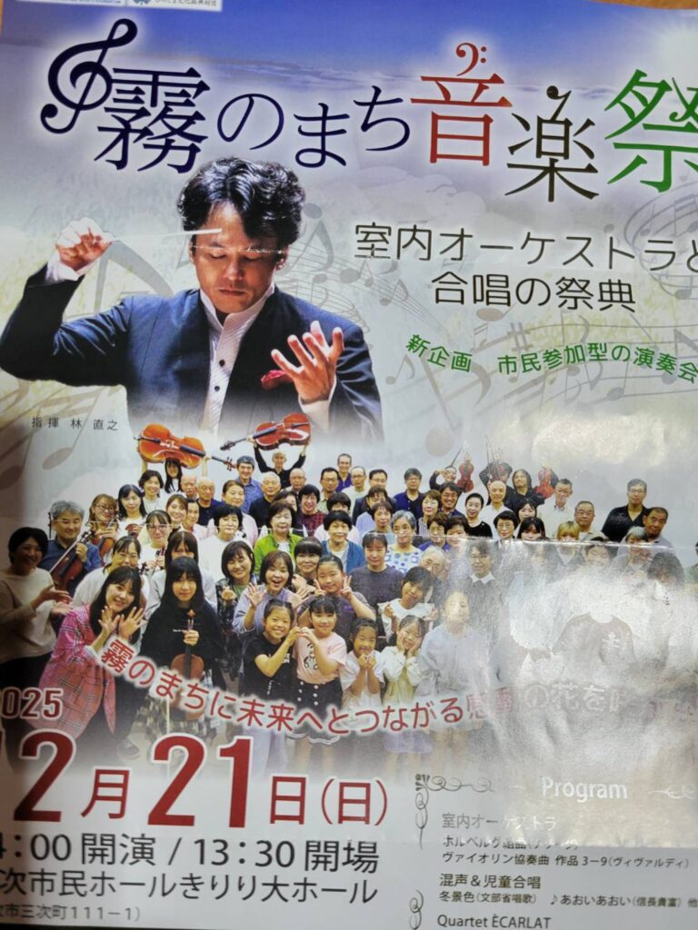 年の瀬に相応しい、我が三次市でないと聞けないこの度の「音楽祭」。